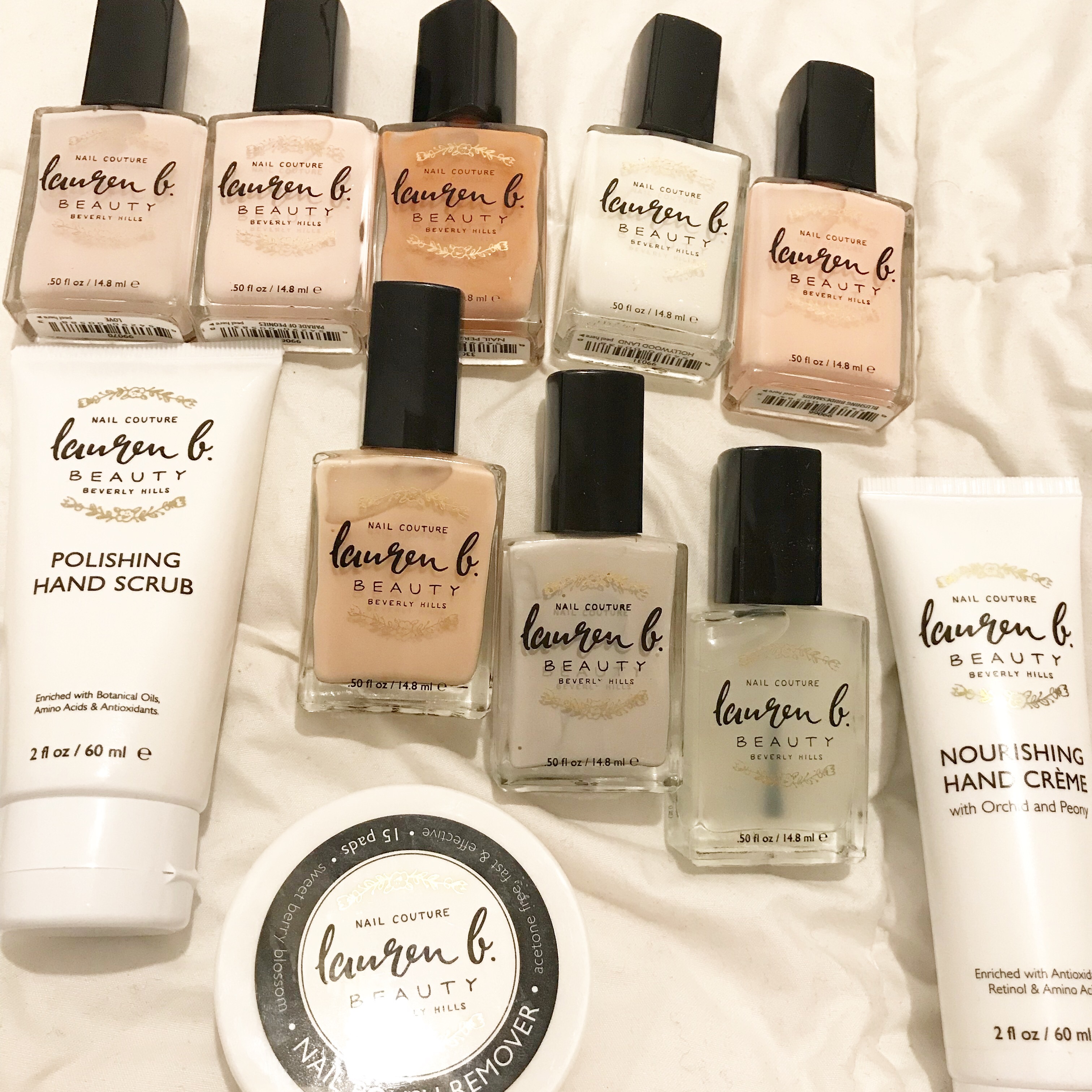 Let’s talk about this Lauren B botanical/organic nail polish. I received nude polishes, cuticle care products and lotions to try. Not to mention the nicely scented polish remover pads that smell like fresh strawberries.