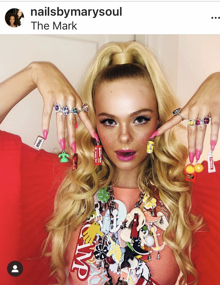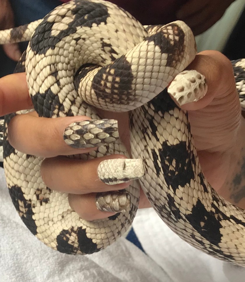 I had the pleasure of working with singer, song writer, Solange. This is our 5th go round and I must say it was an unexpected stream of appraisal. Salvatore Ferragamo created a custom python jumpsuit with matching boots for her Camp look. When I saw the photos of her look and the nails she wanted, I knew I had to have the fabric to match too. Ferragamo made it happen and gave me some scraps to execute the nails she wanted. Through time and patience, I was able to create a nail look that took to social media like wild fire. I was shocked. Who knew that it would be so overwhelming received. I just wanted to make her happy and complete the look she wanted and got so much more. Refinery 29 deemed these nails the best nails of the night! Wow. Thank you Refinery 29