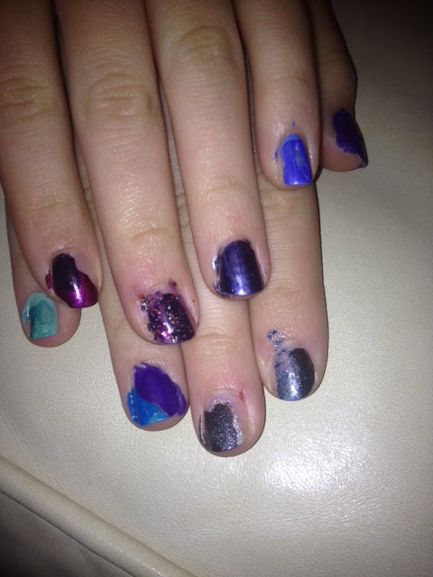 The look of sand in a bottle of nail polish. Nice idea. It goes on matte and feels like sand on your nail. This is 4 days old so the lasting power is pretty good. Nails will take a notice with this look as textured nails are going to be big in 2013.