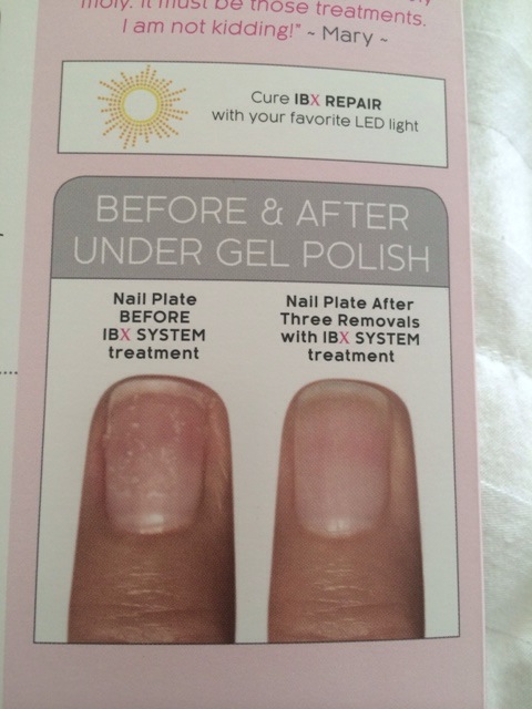 I know your asking youself, how does this work? There are 2 steps that are applied before your manicure and or gel application. One is the repair system for damaged nails and the other is the strengthner, which by the way can be used with natural nails and regular polish. Keep in mind this is a natural nail system. The image below shows the nail with damage before the IBX SYSTEM and the nail after three removals with the IBX SYSTEM.