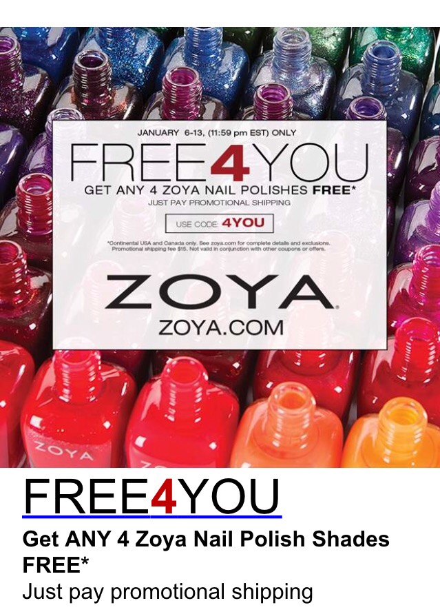 Happy New Year it is. Starting the new year off with great polishes and color choices is made easy from Zoya. This is the perfect time to take advantage of free polishes from the 5 free brand. Zoya has a promo to get 4 free polishes by paying for promo shipping. How awesome is that. So take it from me and go shop Zoya now, you are going to love the colors. Pick up a few of my favorites while you’re there…base coat, top coat, solid gold cuticle oil and Qtica lotion.